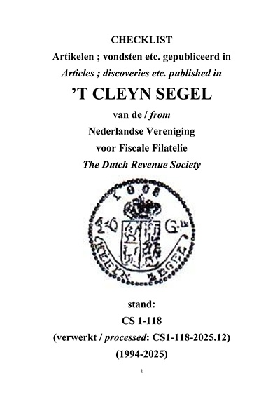 Soms verschijnen er extra uitgaven als bijlage(n) bij een uitgave van ‘t Cleyn Segel. Hieronder de bijlagen uitgegeven vanaf CS101: